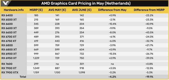 Hardware.info 记录了显卡市场 5 月、 6 月的新变化,中端显卡又迎来一波降价。