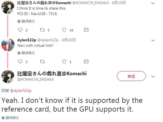 那么是不是意味着RX5700全系列就没有这个接口了呢?也不尽然,这并不意味着第三方厂商在未来不会采取一定的措施。著名Twitter爆料者Komachi日前通过Twitter分享了一个PCI-ID,而这似乎表明Navi是包含VirtualLink的支持。