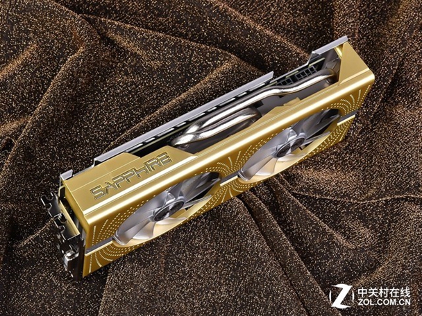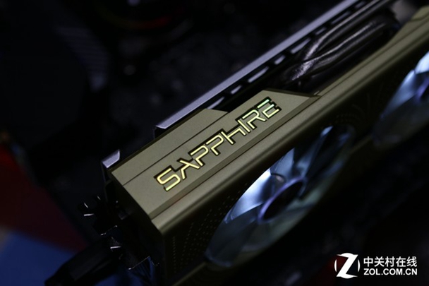 显卡上方依然是我们熟悉的拥有6模RGB灯效的SAPPHIRE标志灯,搭配双滚珠可快拆发光风扇,在静音的基础上带来炫酷的灯效组合。