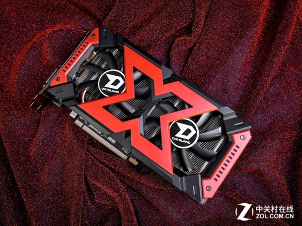 首先我们来看一下外观。迪兰 RX560XT 4G X-Serial 延续了战将系列的一贯风格,它最引人注目的就是前后两个大大的X型标记,将风扇和LOGO分成了两个区域。