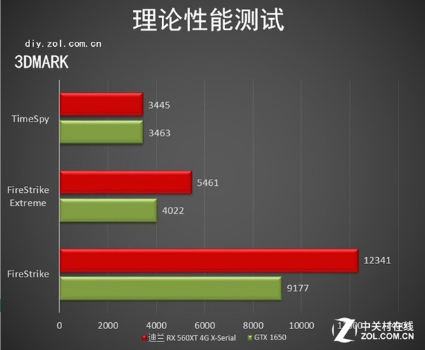 从上面这张表我们能看到,在DX11环境下的FS、FSE两个指标中,迪兰 RX560XT 4G X-Serial明显领先于GTX1650,领先幅度分别是34%和35%,不过3DMARK对DX11环境下的图灵显卡支持并不是很好,所以这个数看看就好,而在DX12环境下二者表现相当。至于具体差距还是要看游戏。