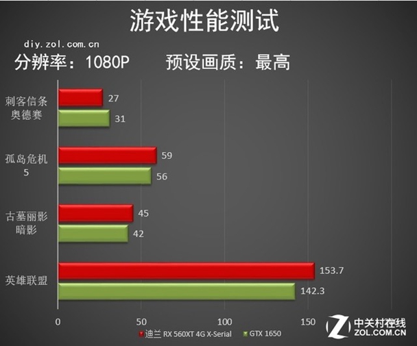 游戏性能上的反应要更真实一些,除了刺客细条奥德赛,另外几款游戏迪兰 RX560XT 4G X-Serial都有着或多或少的领先,3A大作上降低一点画质基本上都可以60帧流畅运行(奥德赛就算了),在一些配置要求较低的电竞游戏上,560XT的表现也更好。