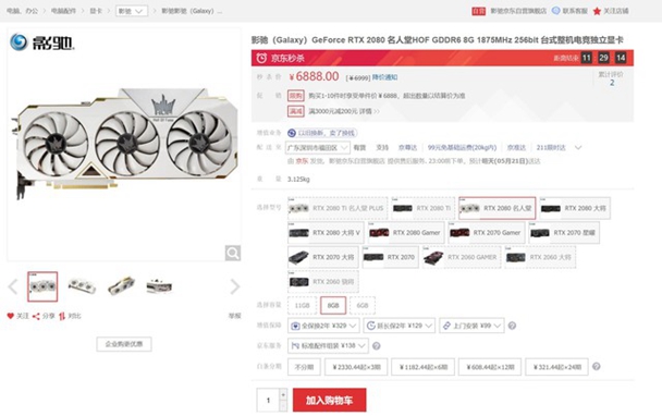 影驰 RTX2080Ti 显卡,HOF PLUS 信仰水冷版,超高颜值,极冷散热,打造每一位高端玩家的专属装备!约惠520,满减在影驰!活动期间购买指定显卡RTX2080Ti HOF PLUS、RTX2080Ti ;即可享受超值满减特惠,满8000立减400,信仰与性能兼具,酣畅4K毫无压力!
