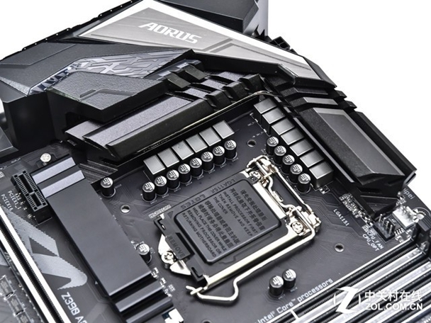 首先在供电方面,技嘉 Z390 AORUS PRO WIFI在鳍片部分使用了进阶散热设计,装备了双大型酷冷散热片,由一根散热铜管贯穿,同时在底部有1.5mm厚高导热系数导热垫,12+1相数字供电能够支撑起九代酷睿的散热和超频需求。
