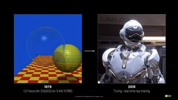 光线追踪这一技术本身并没有多少的新鲜花样,其算法于1979年由Turner Whitted提出。那么为什么直到2006年,皮克斯的《Cars》才开始使用这项技术用于光线渲染呢?那就是因为其所需要的计算量实在是过于庞大,上面提到的Turner这张512×512的渲染DEMO当时支持的计算机就要耗费上百万美元,还是花费1.2小时才渲染完成,足见其耗费的资源算力是如何巨大。