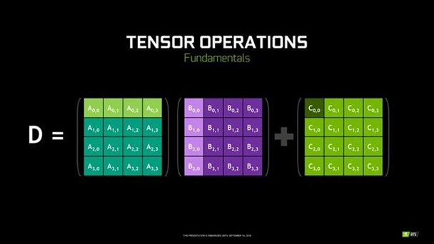 Tensor在中文里面的意思就是张量,区别于我们常见的标量(0维)、矢量(1维)、矩阵(2维),张量拥有3维或者更高维,本质核心上就是一个数据容器,可以包含更多维度数据。其主要应用就是目前大火的AI深度学习,这里面主要会用到FMA矩阵融合计算,而TENSOR CORE的工作方式天生就适用于这种计算。
