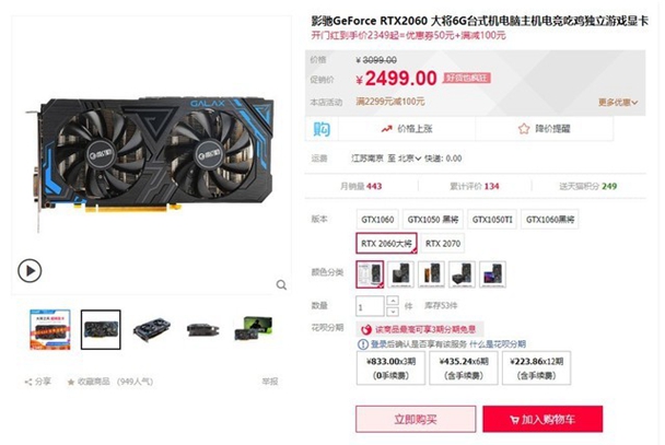 时至618,影驰 RTX2060 大将显卡已经开始了优惠活动,原价2499元参与减100元活动,只需要2399元即可到手,喜欢的朋友不妨关注一下。