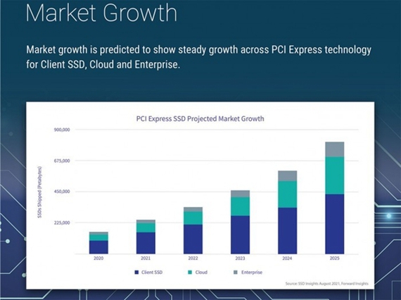 ForwardInsights创始人兼首席分析师GregWong表示预计到2025年,PCIeSSD市场将以40%的年复合增长率、增长至超过800EB,而PCI-SIG将继续满足存储应用的未来需求。