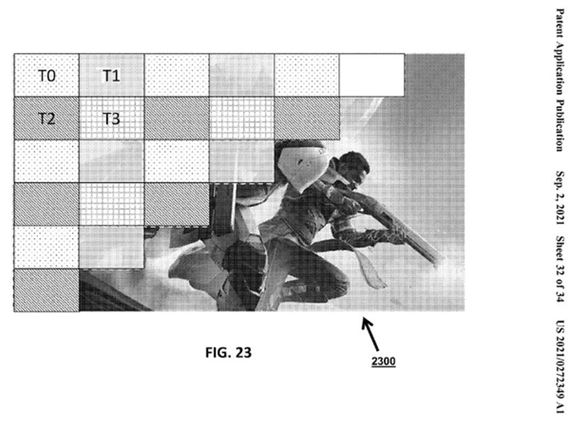 英特尔似乎在考虑将基于图块的棋盘渲染与分布式顶点位置计算集成在一起,当所有图形处理器都渲染好单帧拼图(包括着色、照明和光线跟踪)时,第一图形处理器将它们的成果拼接起来,并最终在屏幕上呈现。按照英特尔的说法,基于图块渲染的单帧被分成多个图块。根据专利的描述,图块将经过第一图形处理器,指出对应的图形单元在哪些地方可见,并为每个图块提供多个图形处理器的渲染框架,直到获得Destiny2帧。