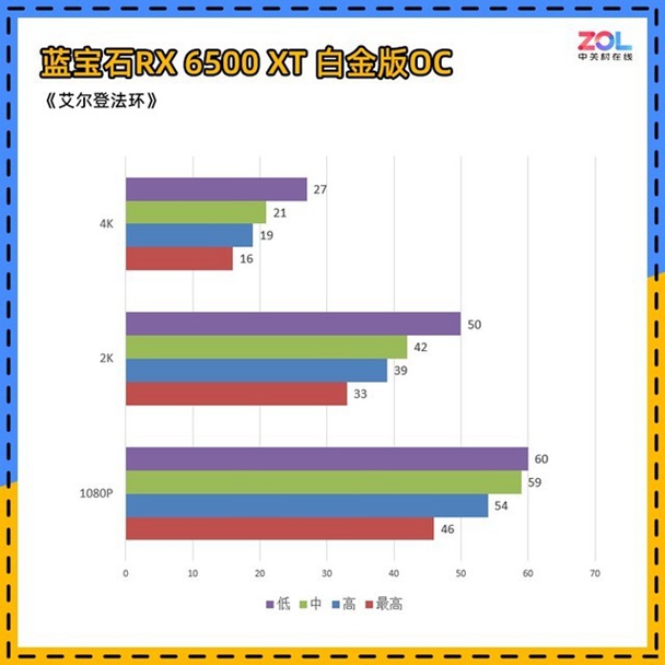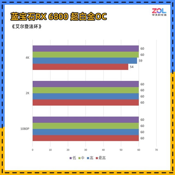 帧数测试上,虽然我们从RX6500XT准备到RX6900XT的显卡,但由于目前游戏硬锁60帧,在RX6800型号后,4K分辨率下也全部为60帧,故不一一列出。