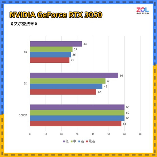 另外由于《艾尔登法环》没有benchmark跑分软件,我们为了不同显卡之间的结果准确性,选择相对复杂的场景记录静态帧数。在实际游戏中,遇到技能释放、敌人扎堆等情况还是会有不同程度下降。