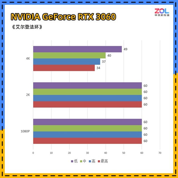 RTX3060在性能上相较RX6600的综合提升约为5%,表现在帧数上则是2K分辨率下的满60帧,至于4K分辨率依然达不到流畅的标准。