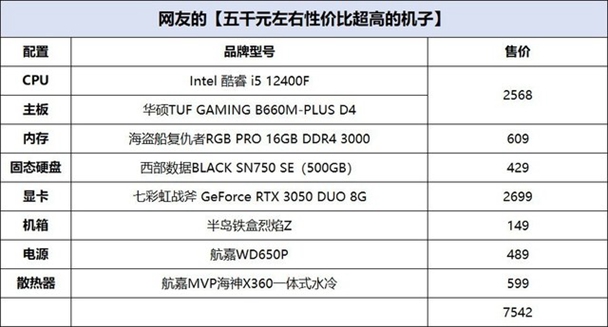 在配置单的标题中,可以看到用户的目的是攒出一套5000元左右的电脑,但最终的实际价格已经达到了7500元,相差着实比较大。