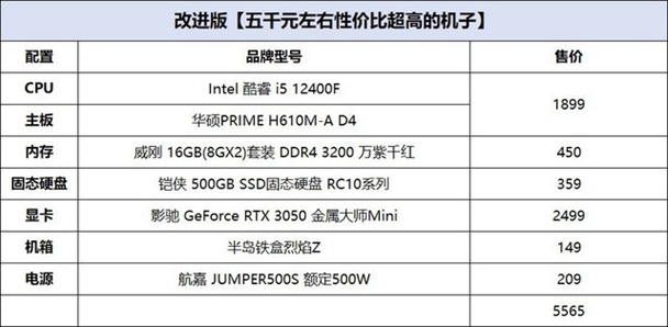 主板更换华硕更低一级的PRIME H610M系列,内存去掉RGB灯光,固态换品牌。电源方面替换掉原本的白金牌,选择更便宜的500W。