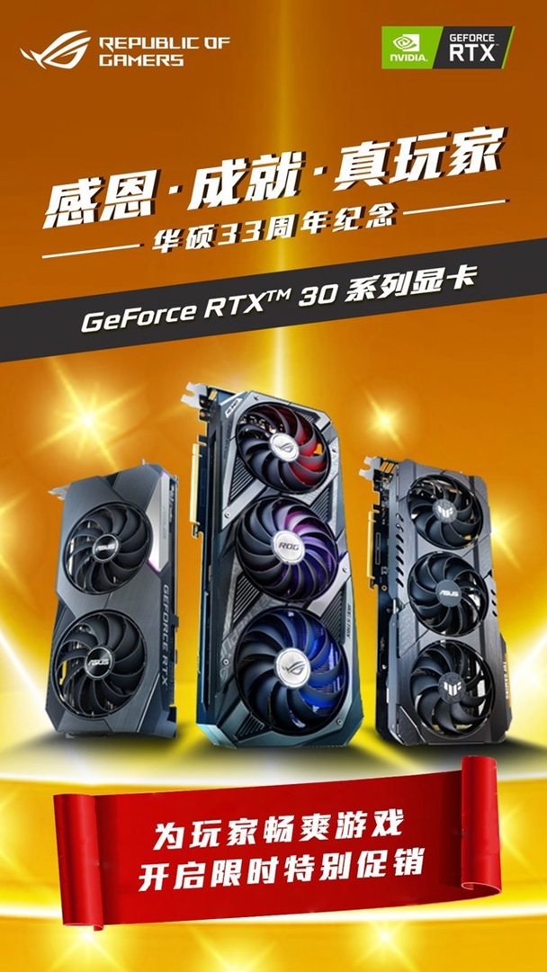 华硕显卡为小伙伴们提供更多了升级换代显卡的新自由选择,现在购买华硕RTX3070以上系列产品显卡,可以享受更大幅度的折扣,欢迎玩家们关注华硕显卡的最新折扣信息哦~
