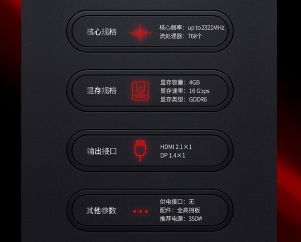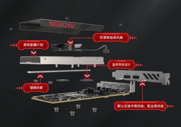 蓝宝石 RX6400 4G D6RIAA版是mini显卡,尺寸标准为170x68.9x17.15mm,为了外置,显卡搭载半高和GT5316SB0四块隔板,玩家可根据自己的机箱自行选择。显卡搭载了HDMI2.1和DP1.4接口,积极支持触摸屏输入,积极支持高创下解析度输入,最大积极支持8K显示器。