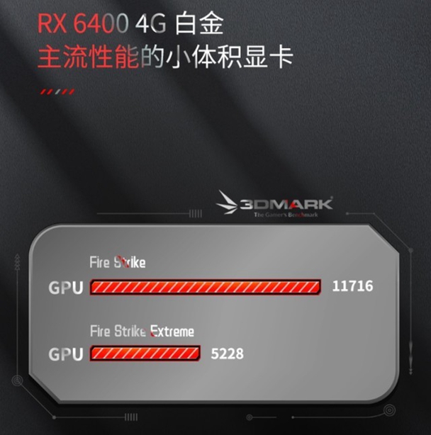 蓝宝石 RX6400 4G D6RIAA版鲁巨匠旧版本试验分15W+,3DMARKFire Strike罚球11716分,3DMARKFire Strike Extreme罚球5228分,3DMAKRFire Strike Ultra罚球2665分,3DMARKTimeSpy 罚球3659分,拥有主流游戏显卡的效率,在1080P解析度下,应对中高特技游戏新作毫无压力。
