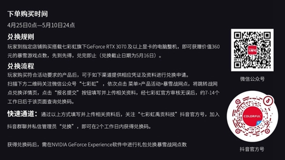 从2022年4月25日起、至5月10日,七彩虹与NVIDIA联手Valve娱乐,为玩家送内有七彩虹电脑大容量送Valve战营业网点数的社会福利。玩家在京东、京东、抖音指定的25家店面中,出售配备七彩虹旗下RTX3070及以上显卡的电脑大容量,就可以赠送价值360元的Valve战营业网点数,用七彩虹高档旗舰光追显卡乐享高清游戏。