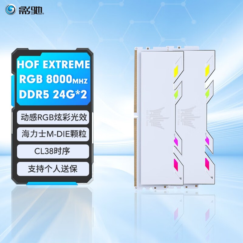 影驰 48G DDR5 8000 名人堂HOF PRO DDR5代套条 RGB灯条 高端发烧超频台式机电脑内存条 HOF EX