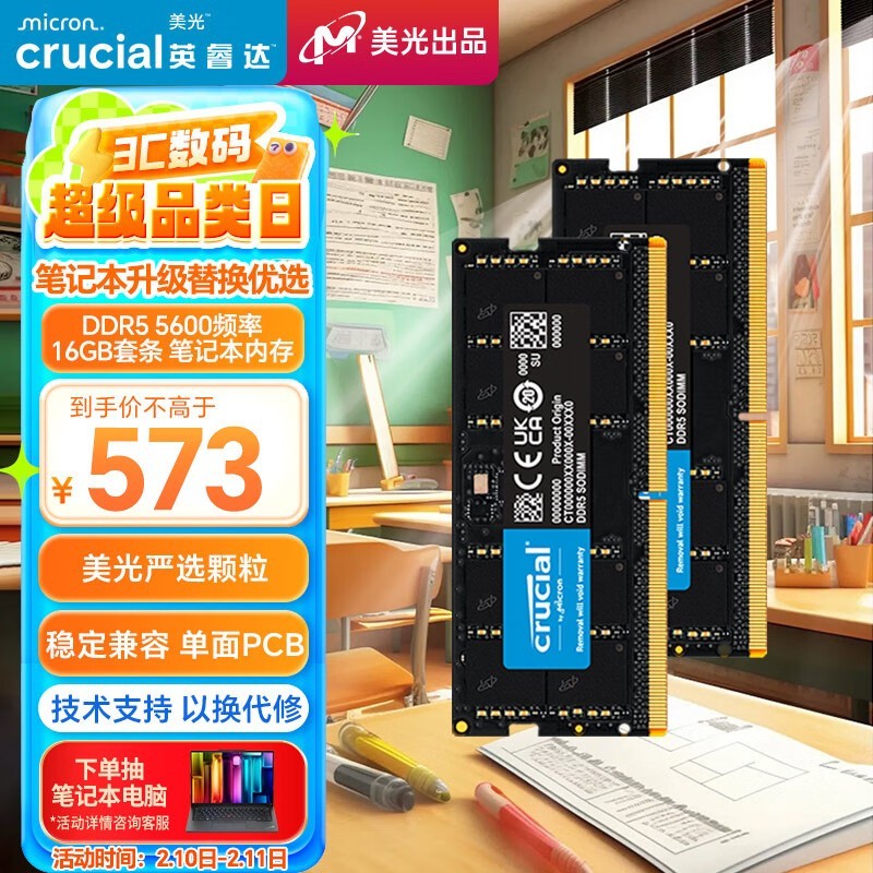 英睿达 32GB DDR5 5600笔记本内存正在京东商城进行促销活动,售价只需573元,比原价589元还要优惠。这是一次难得的购买机会,值得每位电脑用户关注。