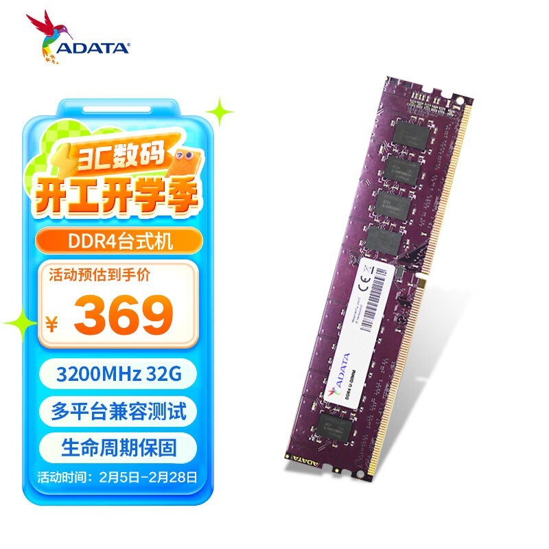 威刚 32GB DDR4 3200台式机内存,现于京东平台火热促销中,原价439元的高品质内存,现在只需364元即可入手!威刚 32GB DDR4 3200大容量内存条,频率高达3200MHz,运行流畅且稳定性极佳,能够轻松应对日常办公、娱乐以及多任务处理需求,兼容英特尔11代和AMD锐龙全系列平台。威刚 32GB DDR4 3200采用即插即用设计,安装简单方便,打开机箱侧盖即可快速完成升级。威刚内存选用优质材料并通过多平台兼容性测试,与各大主板厂商深度合作,为用户提供可靠保障。同时,工作电压降至1.2~1.35V,不仅节能省电,还具备高达25.66B/s的传输带宽,满足您的各种使用需求,是提升电脑性能的理想选择!