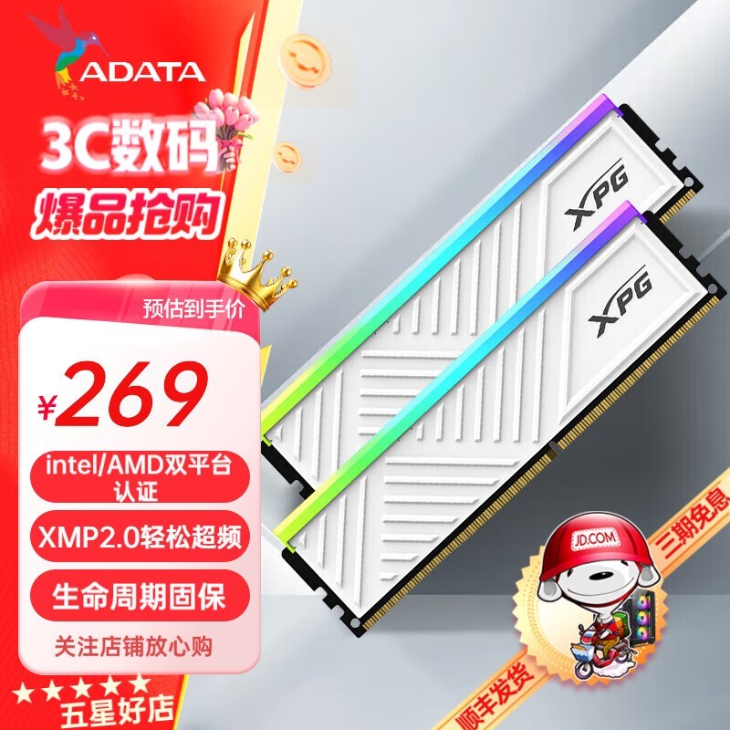 威刚 16G DDR4 3600 D50 XPG超频RGB灯条3200 3600台式机ROG吹雪内存条 【主流D35G】白色