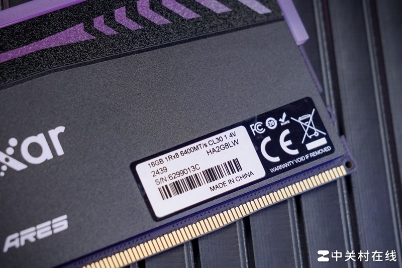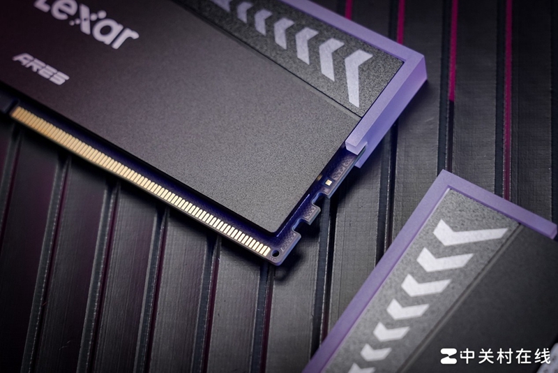 我们测试的这套Lexar雷克沙ARES战神之翼RGB内存是16GBx2套装,由于是相同系列,因此与之前测试的8000MT/s产品有着相同的外观设计,采用黑色的10层黑色PCB、稳重大气的双面铝制散热马甲和大面积的RGB的灯条。