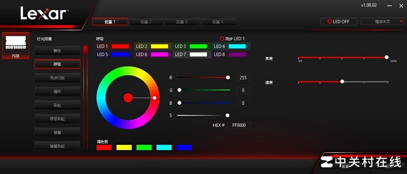 Lexar雷克沙ARES战神之翼DDR5 RGB内存给人的另一个深刻印象,自然就是绚丽的RGB灯效,专属灯效软件Lexar RGB Sync更带来巨大的DIY想象空间,默认提供了静态、呼吸、彩虹等八种灯效,还支持色彩、速度、方向和亮度的调整,让你DIY出属于自己的的炫彩空间。