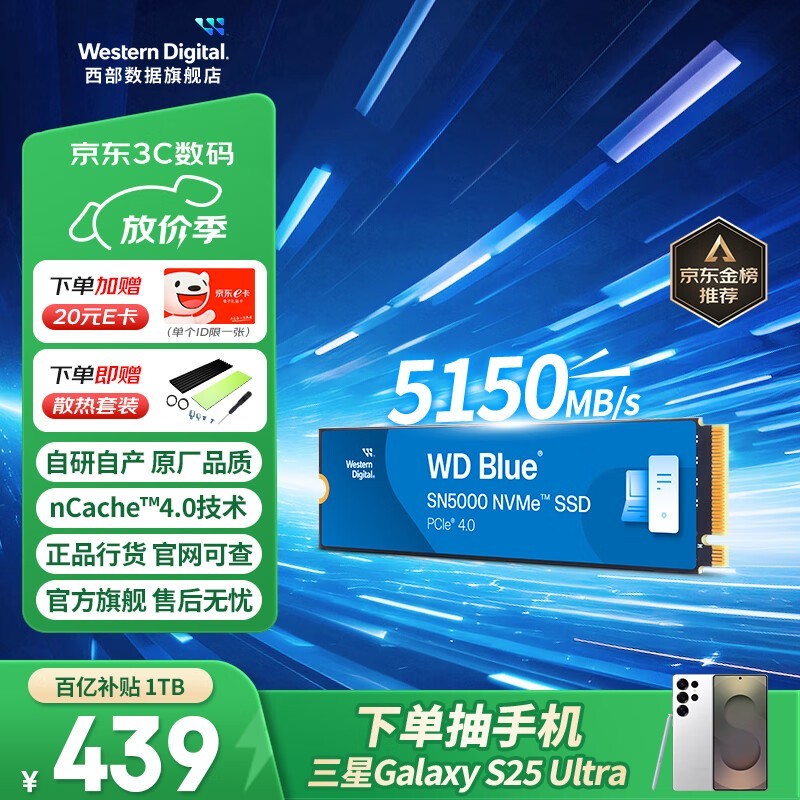 西部数据 SN5000固态硬盘,采用NVMe M.2接口,包含sn580/sn770/sn850X/SN5000等多款独家新品,支持PCle4.0技术,提供超大2TB存储容量,为您的设备带来极速读写体验和卓越性能。