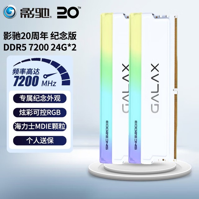 影驰 48GB DDR5 7200星曜 20周年纪念版 DDR5 7200 48GB(24*2套条) RGB灯条 台式机内存条 纪念版