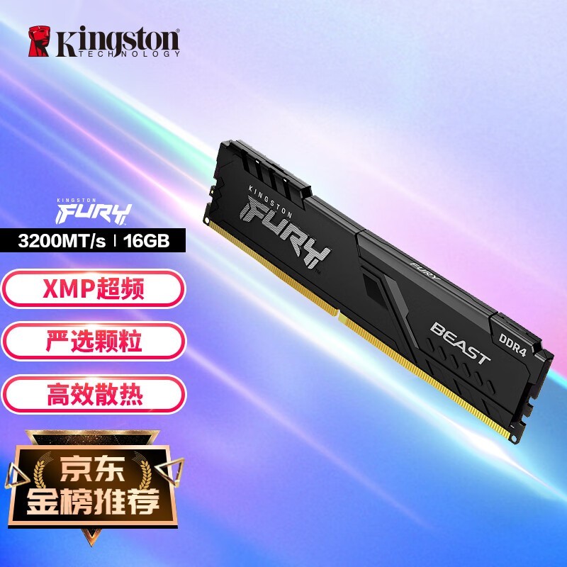 金士顿 16GB DDR4 3200 C16 台式机内存条 Beast野兽系列 骇客神条