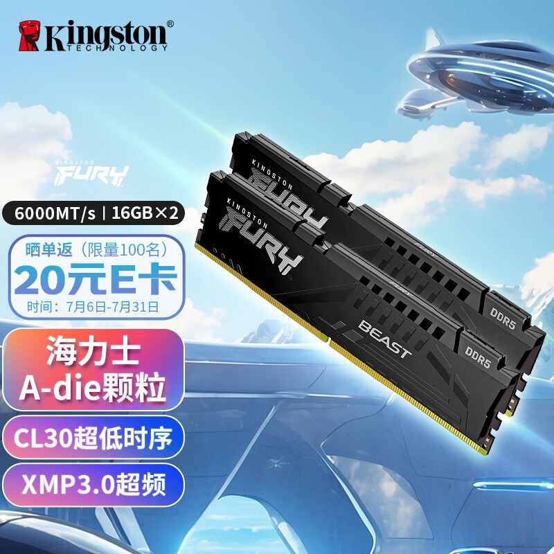金士顿 32GB DDR5 6000 台式机内存条 Beast 超级野兽系列 海力士A-die颗粒 CL30