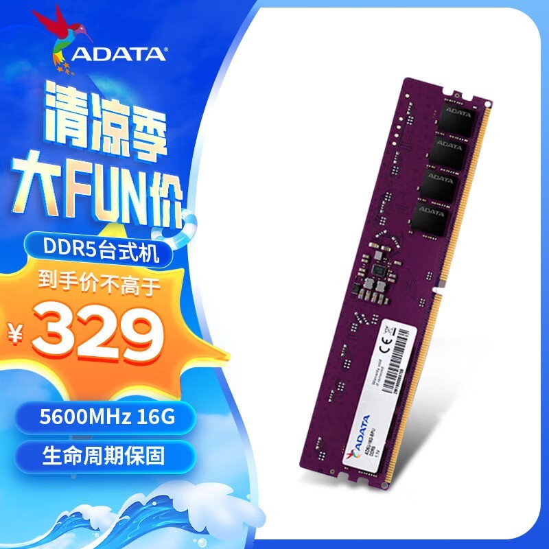 ADATA 威刚 16GB DDR5 5600 采用高性能DDR5颗粒的台式机内存条,带来超强的运行速度和稳定性。支持XMP3.0一键超频功能,轻松提升系统性能。采用高效散热设计,稳定运行更加无忧。如今只需329元,比原价便宜40元,性价比极高。好价钱难得,喜欢的不要错过!