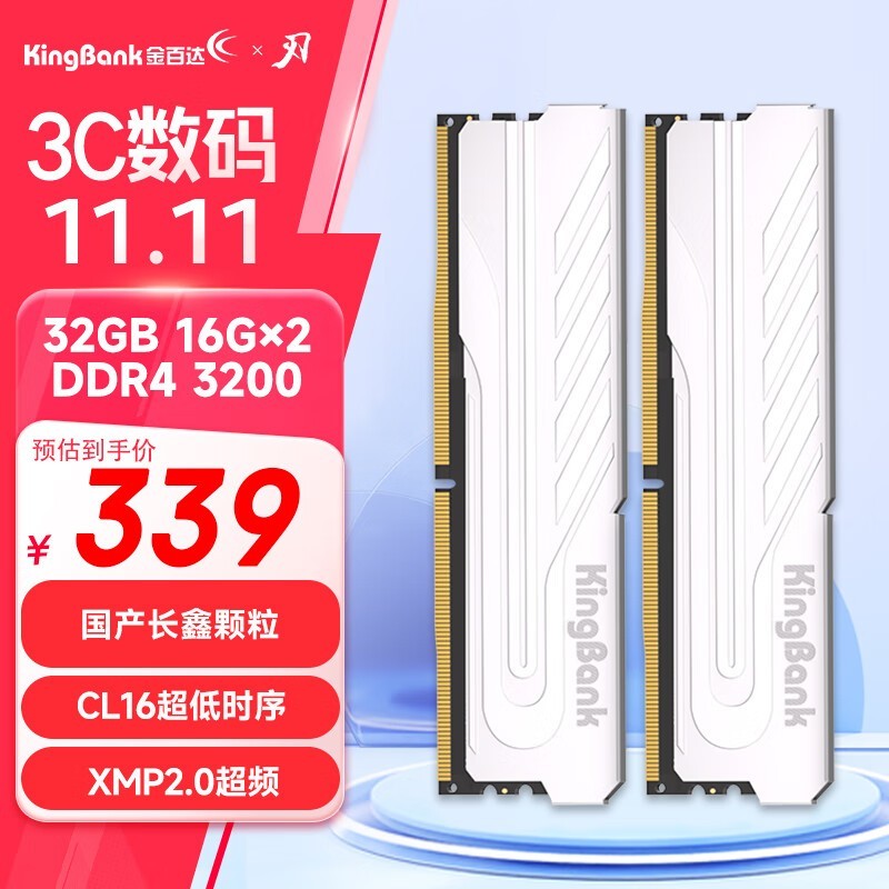 金百达 32GB DDR4 3200 台式机内存条长鑫颗粒 银爵 C16 适配黑神话悟空