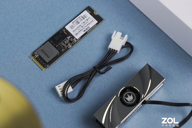 包装盒内的所有配件,包括固态硬盘本体,散热马甲和一条散热风扇的电源延长线,与HOF EXTREME 50相同。