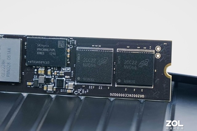 NAND存储芯片依然为美光232层堆叠的3DTLC,接口带宽2400MT/s,缓存芯片也是4GB的SK海力士LPDDR4。