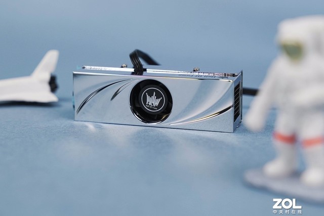 名人堂HOF EXTREME 50S的散热马甲也与HOF EXTREME 50相同,采用全金属镜面电镀银外壳,内嵌大面积纯铜散热鳍片和一只微型的PWM散热风扇,整体非常有分量。