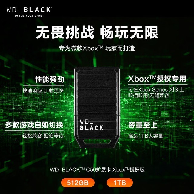 西部数据 C50 移动固态存储扩展卡 Xbox Series XS 游戏即插即用无缝兼容外接拓展存储