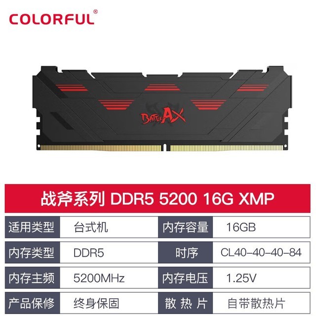 七彩虹 16G DDR5 5200 台式机内存 高速电竞游戏马甲条 战斧系列