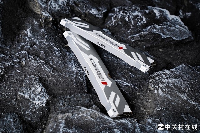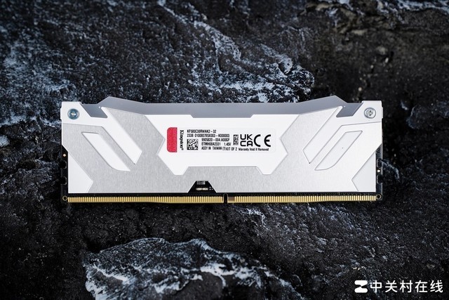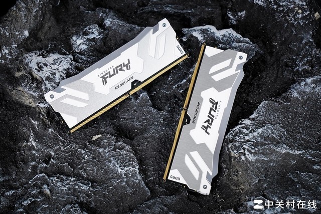 叛逆者(Renegade)DDR5-8000 RGB内存采用黑色的PCB,并包裹双面铝质散热片,保证内存长时间高频稳定运行。散热片的设计延续了“RENEGADE”的风格,白底+金属原色的左右对称的浮雕造型,很像机甲的面罩,中间是批花斜纹工艺的“KINGSTON FURY”Logo,下方银色部分印有“RENEGADE”字样。