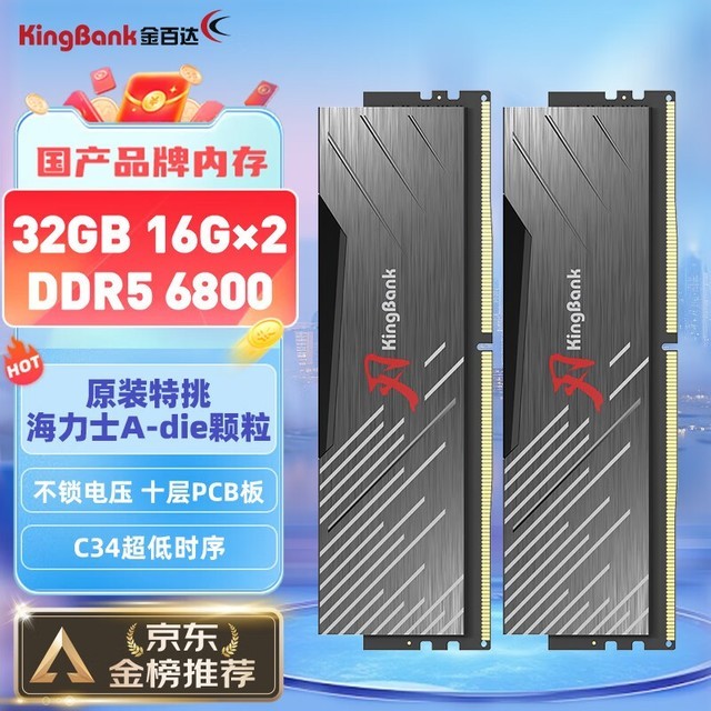 金百达 32GB DDR5 6800 台式机内存条海力士A-die颗粒 黑刃无灯 C34