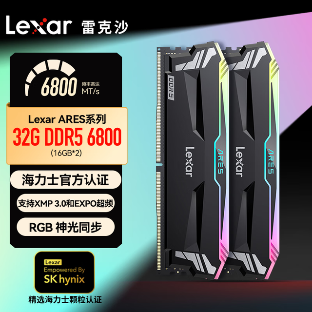 雷克沙 32GB DDR5 6800 16G*2套条 电竞RGB灯内存条 Ares战神之刃 黑色