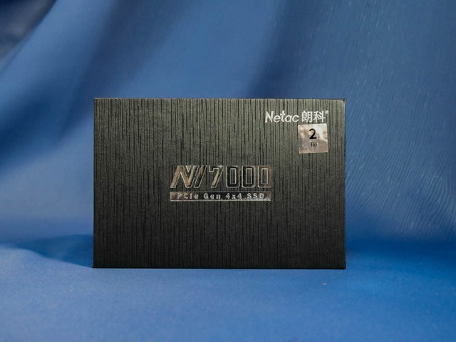 朗科 NV7000的外包装还是比较简单的,黑色天地盖盒包装,NV7000型号,右上角Netac朗科品牌标识,加上容量2TB的贴纸。