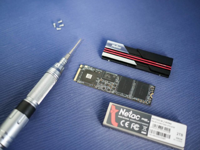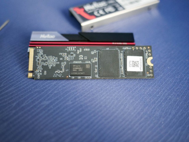 与市场上大多数M.2固态硬盘相比,朗科 NV7000硬盘有自己的散热装甲,前面是铝合金散热鳍片,散热片材质充足,哑光黑色背心上点缀着红线,设计非常好。作为朗科这个老式储藏厂商的主要系列,我还是喜欢用过的几款产品的外观设计。