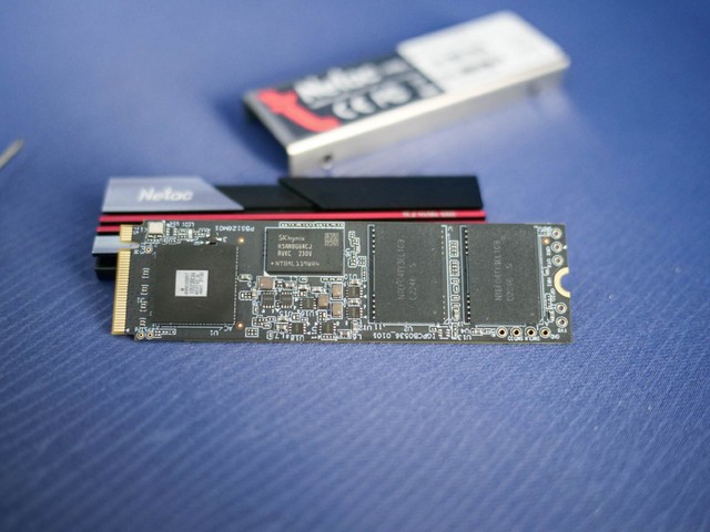 PCB采用双面设计,即硬盘两面都有储存颗粒,并且都配有H5AN8G6NCJ缓存颗粒,每面都配有自来SKHYNIX海力士,每面1GB。