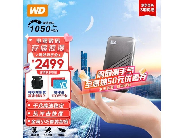 西部数据 移动固态硬盘 4TB NVMe 移动固态硬盘(PSSD) My Passport随行SSD Type-C接口 传输1050MB/s笔记本手机电脑