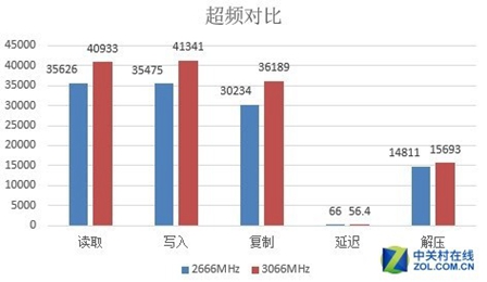 通过对比我们可以看到,在3066MHz下各项成绩的提升都相当明显,所以小伙伴们也可以在超频方面挖掘它的潜力。