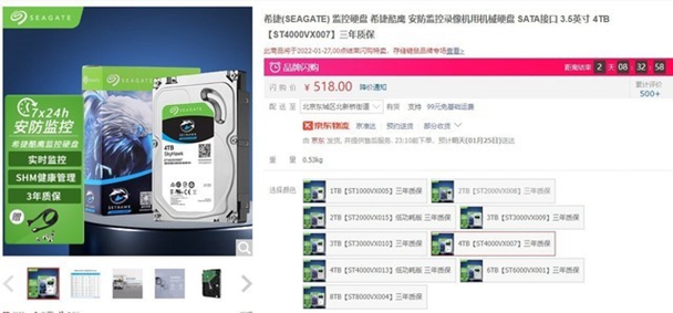 该硬盘隶属于希捷酷鹰系列,酷鹰系列是希捷面向监控需求推出的专用硬盘。希捷酷鹰系列均支持7×24小时全天候运行,希捷针对监控场景带来了ImagePerfect技术,可以支持64路摄像头并发存储,硬盘具备180TB/年的工作负载和100万小时的平均故障时间,提供3年质保。