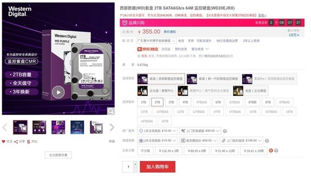 安防监控硬盘,是近年来潜力巨大的新市场,各大存储大厂也都推出新系列。其中西部数据 紫盘,便是其中佼佼者,目前西部数据 紫盘正在京东旗舰店开展秒杀活动,2TB容量售价仅为355元,有家庭监控,需要全天候值守、录制的朋友,可以入手一波。