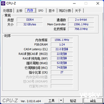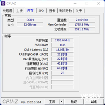 我们在插槽2和插槽4中安装了雷克沙 32GB DDR4 3600内存,并使用CPU-Z读取信息。可以看出,这种雷克沙 32GB DDR4 3600内存使用镁颗粒来支持XMP。0.我们还将默认JEDEC参数和打开XMP后的参数。